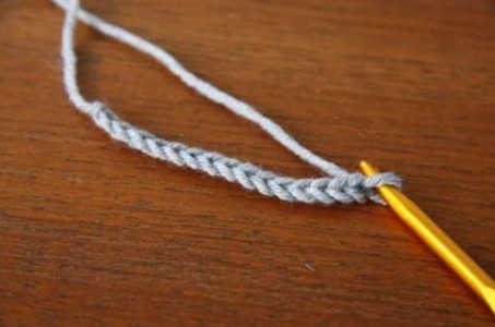 So first off: Make your foundation chain. You can do a chain of 15 using 3 groups of 5 loops for your lace.
