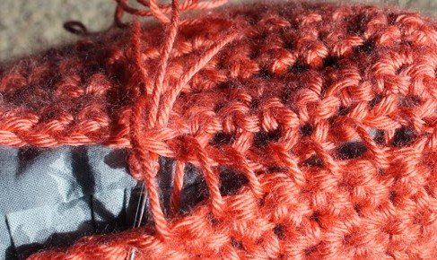 All you need to get going and make these throw pillows is your yarn, needles and scissors and your chain, single crochet and turn. The color this crafter used — her name is Jennifer and she’s an Idaho wife and mother over at the Craft Patch — was Persimmon by the Caron Simply Soft line of crochet yarn.